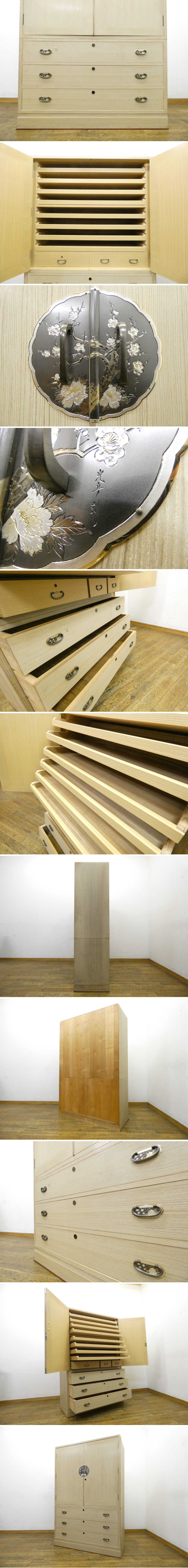 ◆RN416◆伝統工芸◆総桐箪笥◆花車彫金金具◆光彦刻◆四方丸◆和箪笥◆着物箪笥◆整理箪笥◆鍵付き◆民芸金具◆タンス◆衣類箪笥◆120万 收藏