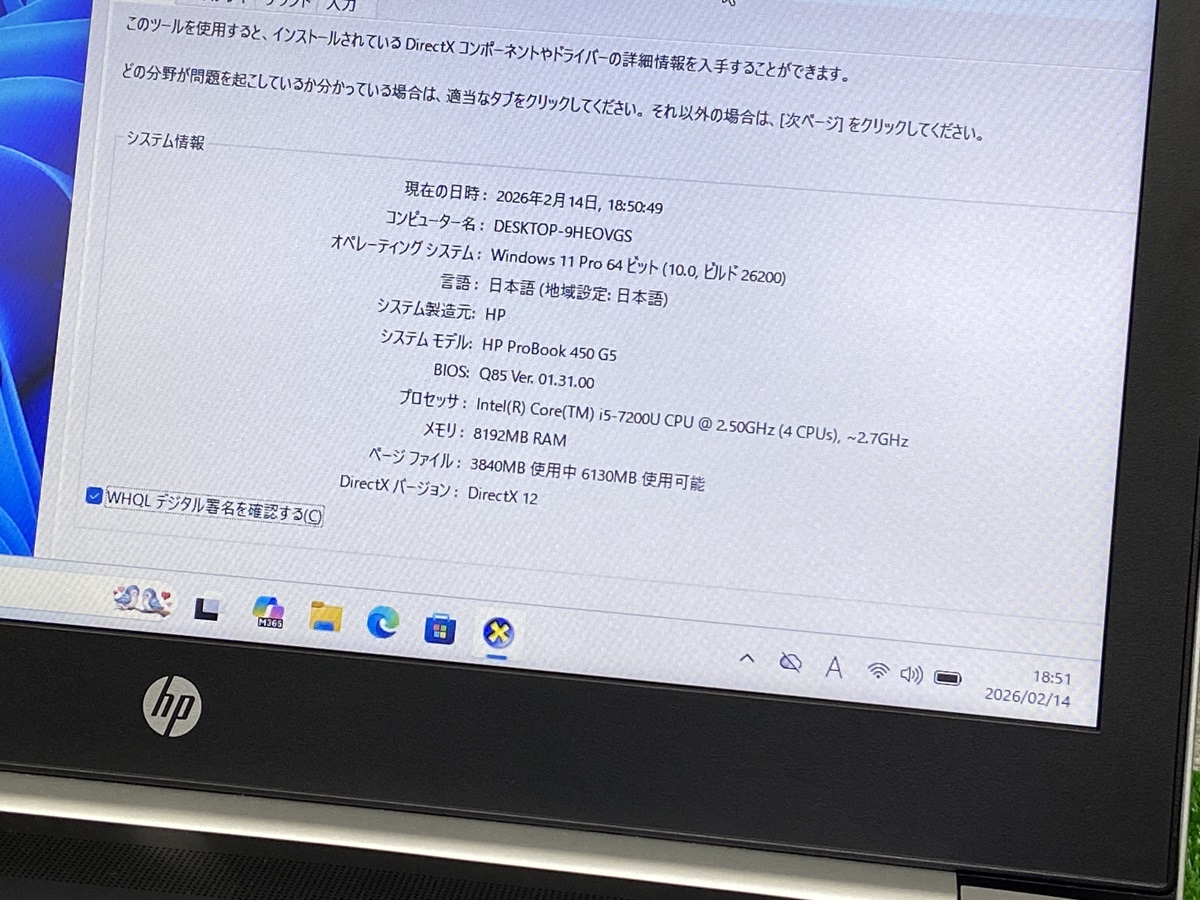 HP PROBOOK 450 G5 ノートPC i5第7世代 Core i5-7200U TOKYO HP ノートパソコン中古 メモリ8GB NVMe 256GB カメラ 15.6 LAPTOP