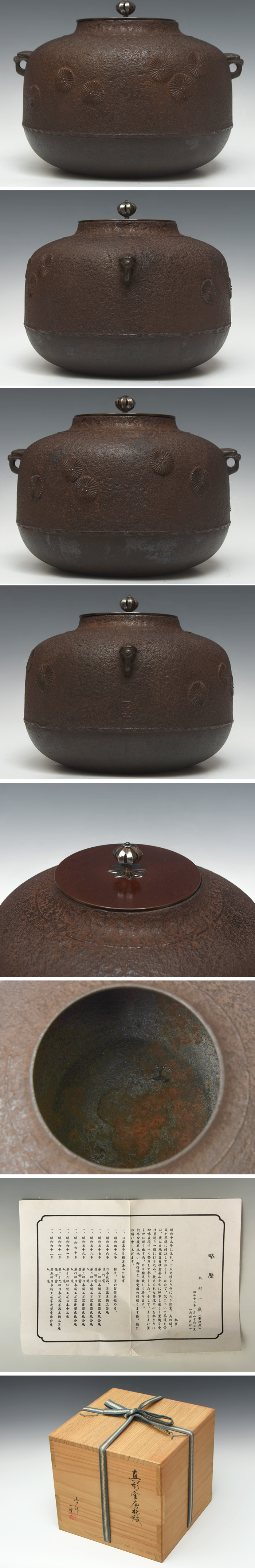 釜師 木村一無 (造) 唐松紋 真形釜 共箱 しおり 釜鐶 肇次郎 炉釜 鉄釜 茶釜 茶湯釜 茶道具 炭道具 金属工芸 |