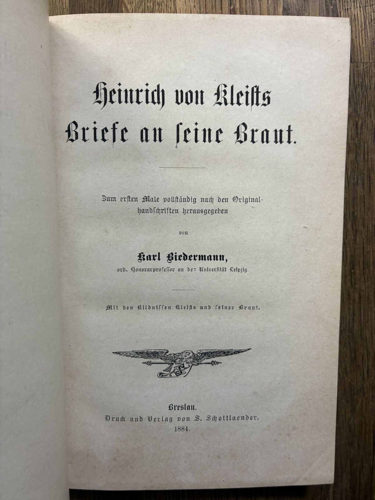 1884年 クライスト 婚約者への手紙 Heinrich von Kleist Briefe an seine Braut 洋書古書 收藏