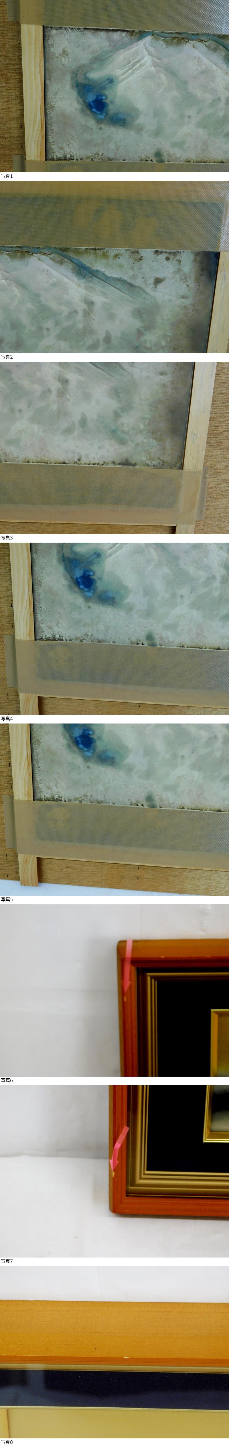 山の下の方に変色のような汚れがあります。 画家の中側はガムテープで留められてます。 全体的にやや・キズ・汚れ・スレ等ございます。