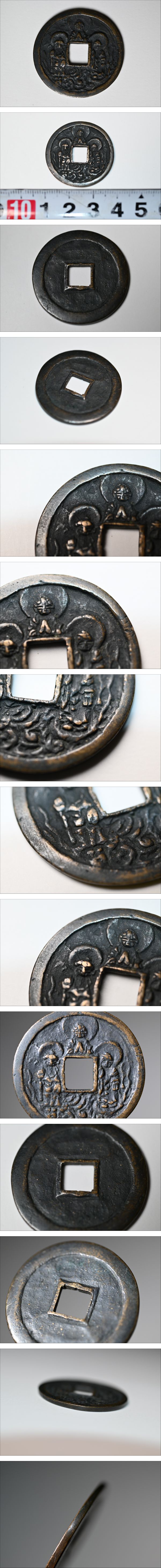 古銭 絵銭 三尊 福銭 仏銭 穴銭 重量約8.8g 径約31mm 三尊佛 阿弥陀如来 観音菩薩 仏教美術 佛教 | |||