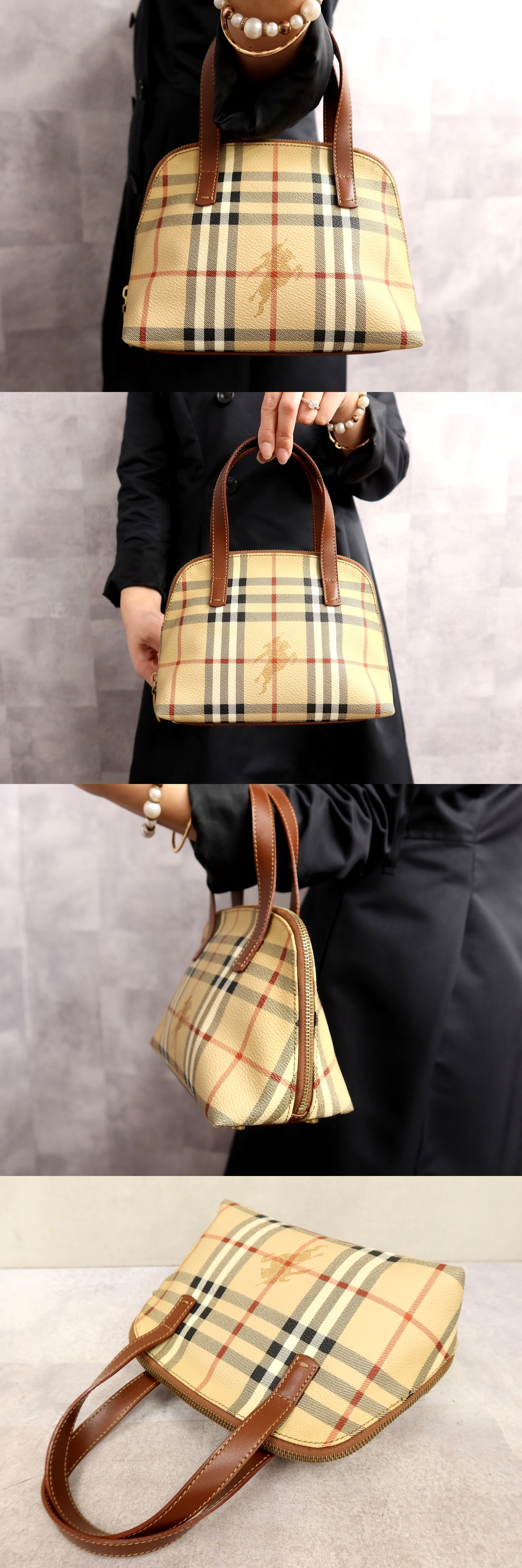 ●超美品●BURBERRY バーバリー●ノバチェック●PVC カーフ レザー 本革●ハンド バッグ●ブラウン ベージュ●ゴールド金具●収納●Js66351 收藏