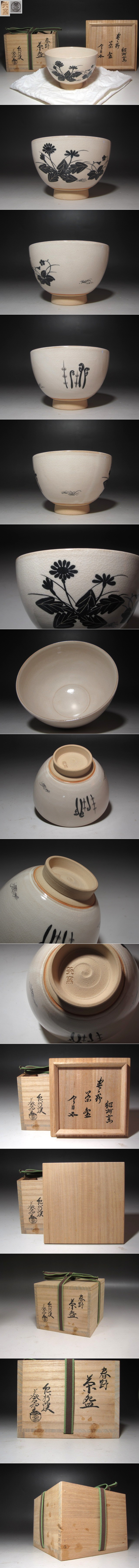 ☆ 紀州焼 葵窯 春の野茶碗 裏千家十五代鵬雲斎の花押がございます☆y681