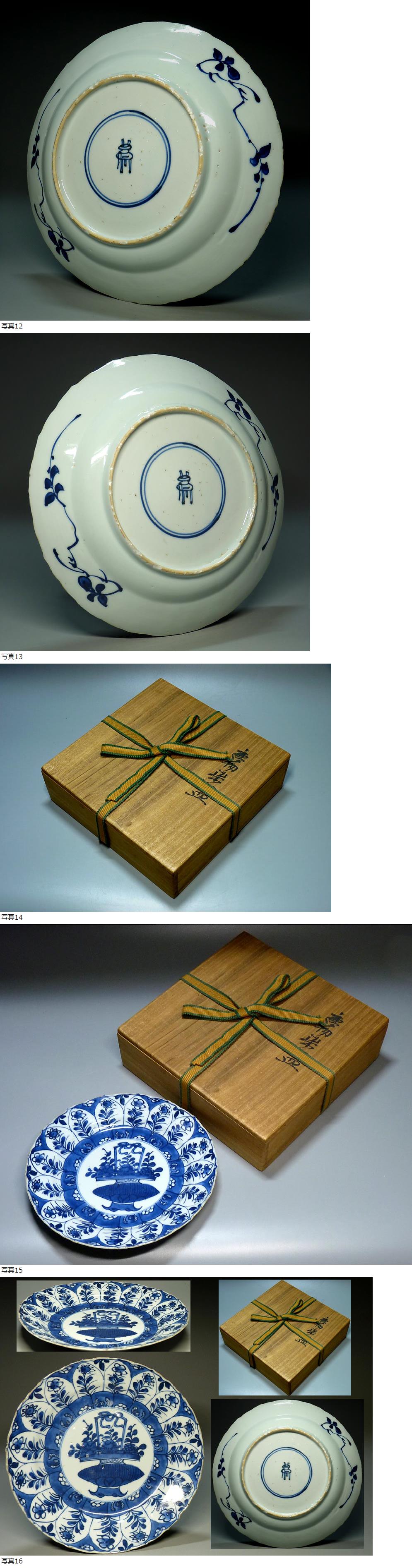 【夢たま】伝世のウブ品!明代 南京 古染付 花籠草花文輪花皿 幅21㎝/唐物 天啓 呉須 中国古玩☆ 收藏