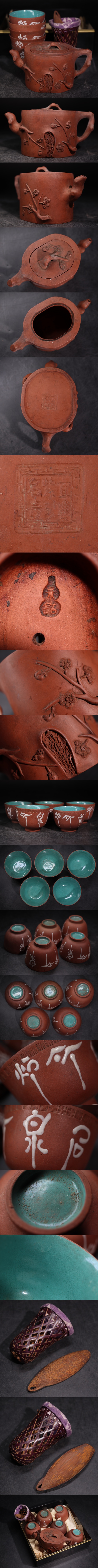 茶器 「 宜興紫砂名壺 底款 ・ 蓋款 急須 煎茶碗 茶合 」 / 紫泥 紫砂 煎茶道具 .G4111 收藏
