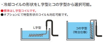 | 冷却コイルの形状をL字型とコの字型から選択可能。 標準はL字型コイルです。オプションにて特型形状のコイルも対応可能です。 | ![]() |