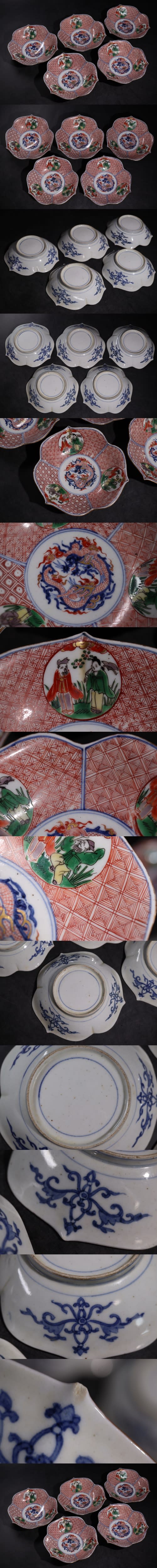 時代 赤絵 金彩 龍 ・ 人物図 皿 五客 / 中国美術 色絵 五彩 茶器 煎茶道具 検索: 天啓赤絵 .G4162 收藏
