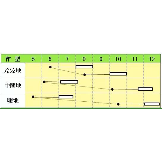 | 葉柄の幅は陽夏と比べて広く、葉の枚数が多く、形状が良いのが特長です。草丈は陽夏と同じくらいか、少し短めになります。草姿は立性で、葉の形は丸く、陽夏より大きめになります。とりわけ節間伸長少なく、まとまりがあるので、 夏蒔きに向く品種になっています。 ※種子は播種後の栽培条件、天候事情により、その結果が異なる場合がございます。万が一、結果不良でも保証はできかねます。 【栽培のポイント】 ・抽苔の可能性があるため極端な早蒔きは避けてください。 ・移植栽培の場合、老化苗や肥料切れは活着が悪く、抽苔を早める事があるので注意します。 ・夏栽培に適する品種ですが、盛夏栽培では株間をやや広くとり、肥料を20%程度減らすと病害無く健全に栽培できます。 ・本圃の施肥量は全量元肥で各成分13kg/10a程度を基準とします。 盛夏栽培では遮光資材(ネット)を使用して品質の良いチンゲンサイの生産を目指します。 ・ハウス内にコナガ・ハイマダラノメイガ等の害虫を入れない様に寒冷紗を必ず張ってください。 ・ 最適播種期は6~7月蒔きで、軸伸び、節間伸長しやすい時期に特に品種特性を発揮します。 |