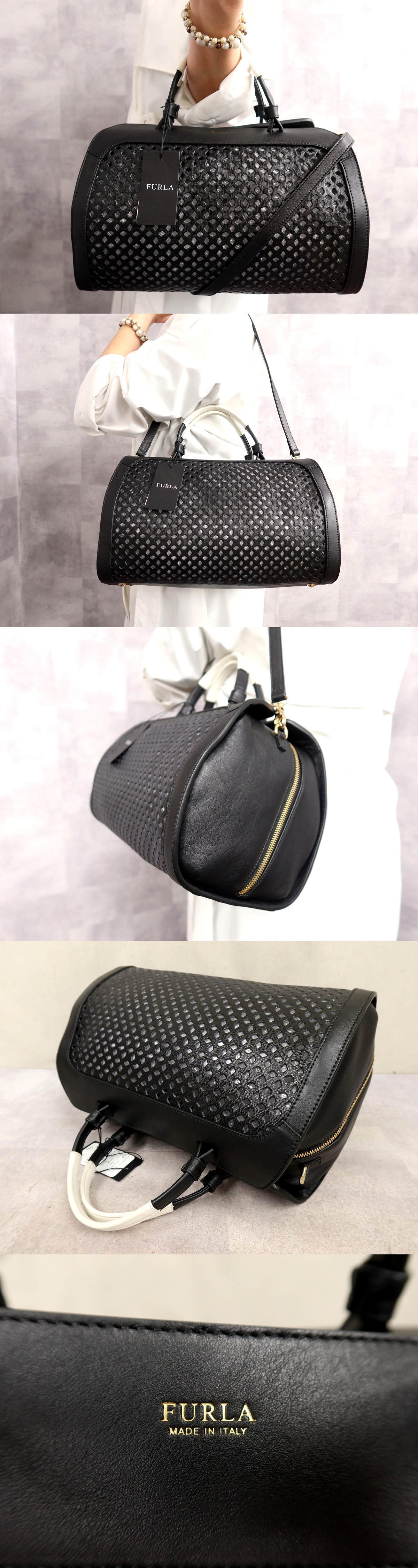 ●超美品●FURLA フルラ●ヴィーナス●パンチング●レザー 本革●2way ボストン トート バッグ●黒 白●ゴールド金具●かばん●Js67114 收藏