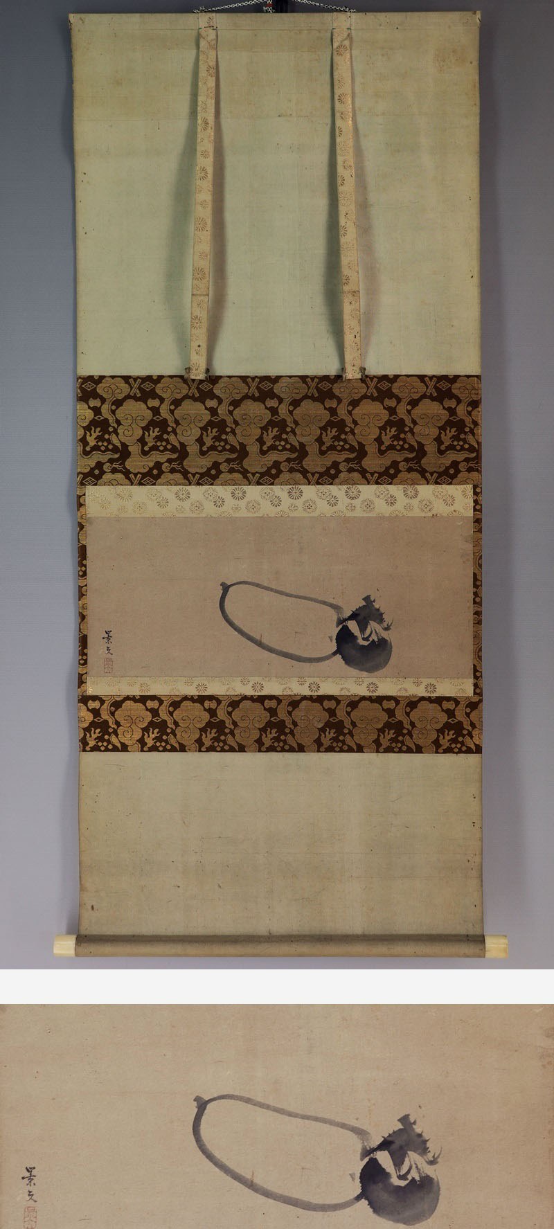 | №2107115【真作】松村景文【茄子瓜図】◆紙本◆合箱◆掛軸 | |