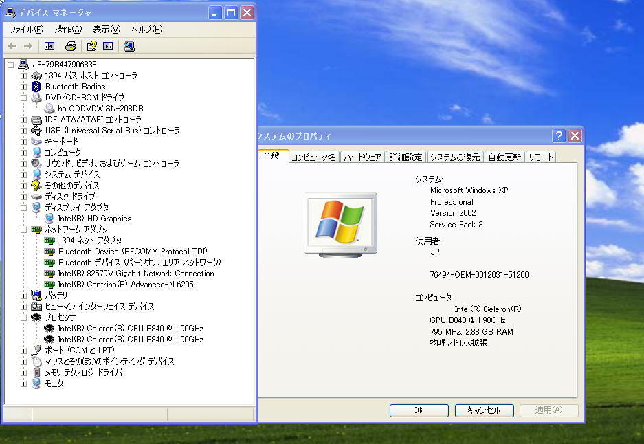 CPU | Intel Celeron プロセッサー B840 2M キャッシュ、1.90 GHz |