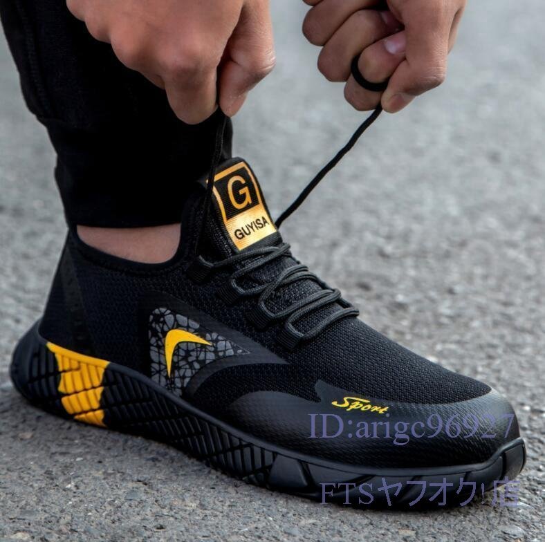 A2094☆新品メンズ 釘踏み抜き 防止 ワーク シューズ 通気性 鋼鉄先芯 作業靴 黑黄 サイズ 24.5cm~27.5cm選択 收藏