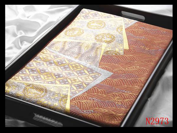 A【N2973】厳選美品 波に七宝藤紋 珊瑚朱色 気品豊かに 正絹純金糸高級美術名古屋帯 ◇検◇簪着物袋帯名古屋帯帯締め 收藏