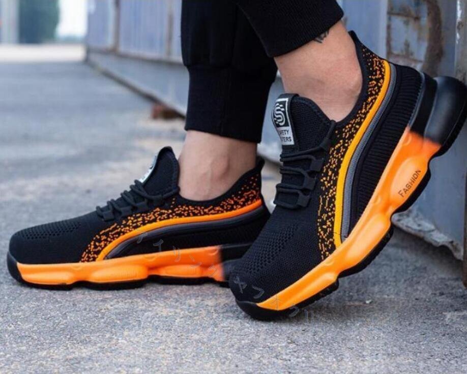 ☆新品メンズ安全靴作業靴セーフティーシューズ夏用ワークシューズ レディース耐磨耗衝撃吸収スニーカー耐滑通気オレンジ 23cm~29cm