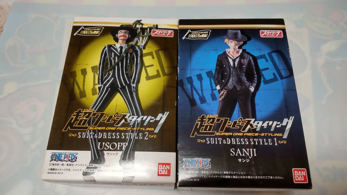 ONEPIECEの超ワンピーススタイリングSUITS&DRESSSTYLEのサンジとウソップのセットです。未開封品ですが。箱は傷汚れあります。ご落札後はノークレームノーリターンでお願いします。どうぞよろしくお願い致します。