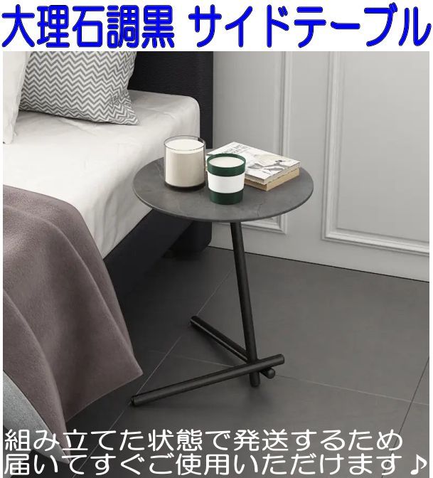 丸サイドテーブル 大理石調 黒ブラック ミニテーブル コーヒーテーブル 軽い 組み立て済み ベッドルーム リビング サブテーブル ④ 收藏