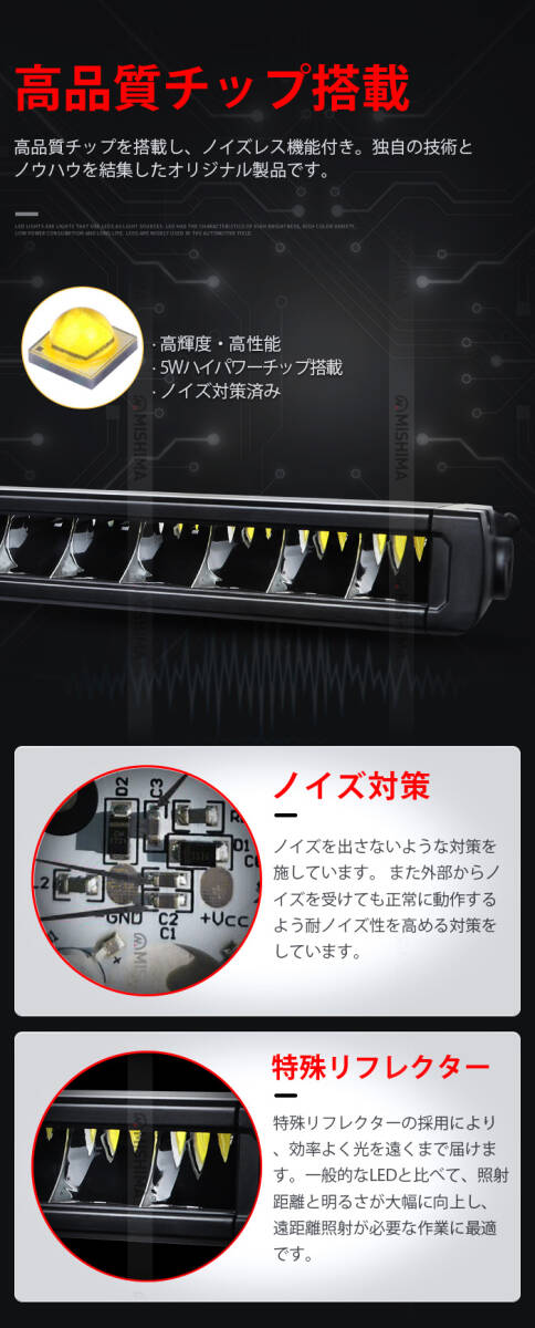 ※ノイズ対策が施してありますが、電源の状態や無線・ラジオの周波数は様々ですので、絶対に影響が無いとは限りません。そのような場合、LED自体の作動に問題がなければ保証対象外となります。