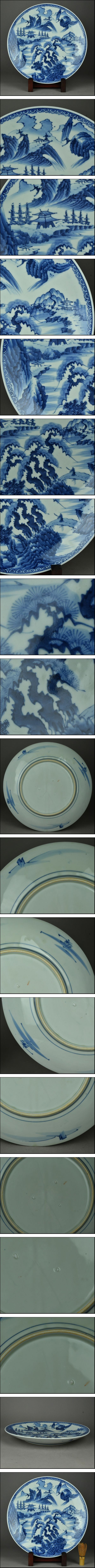 【ACT】古伊万里 時代物 染付 山水風景図 大皿 飾皿 床置 古美術品 幅41cm A7-717AL 收藏
