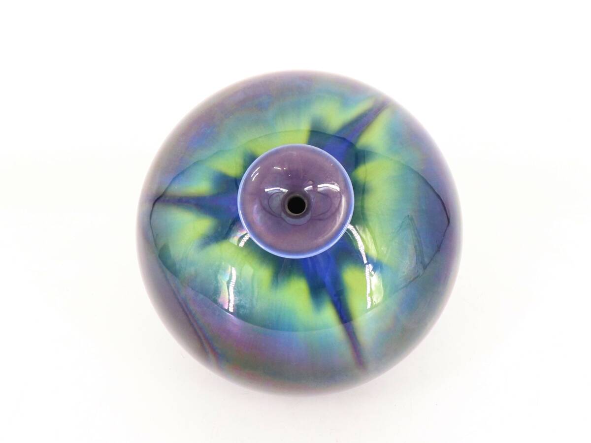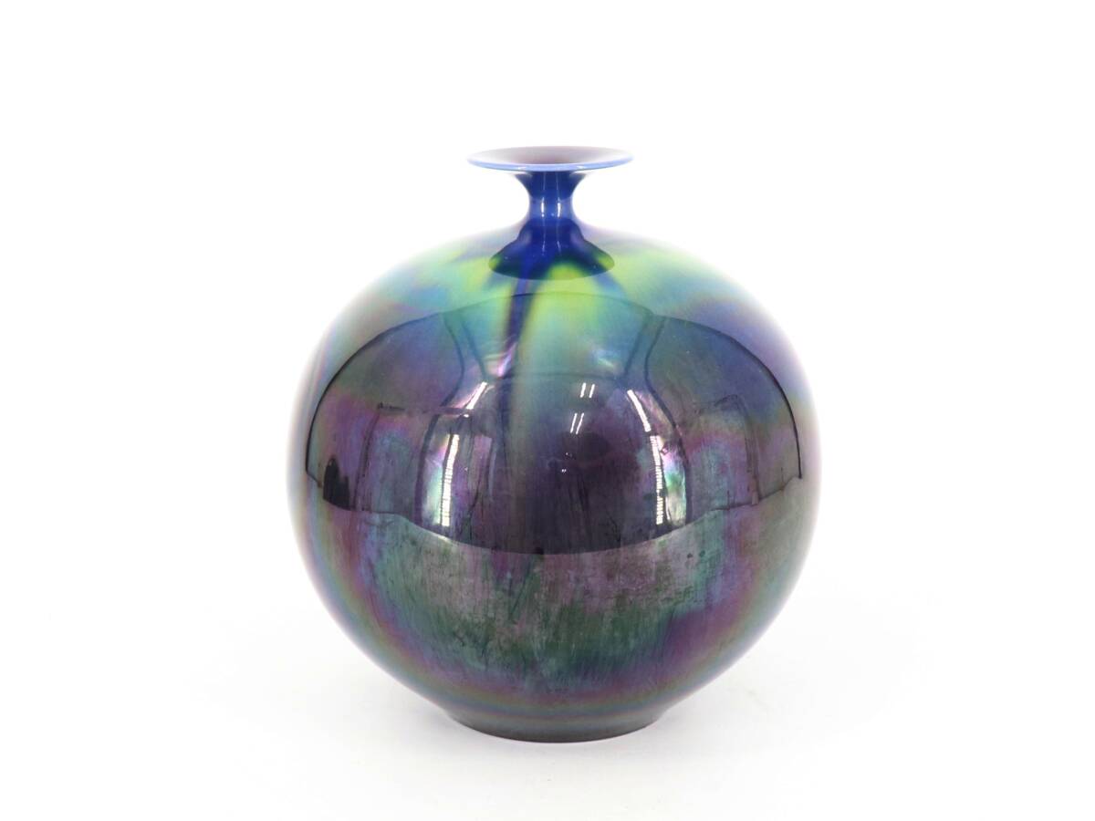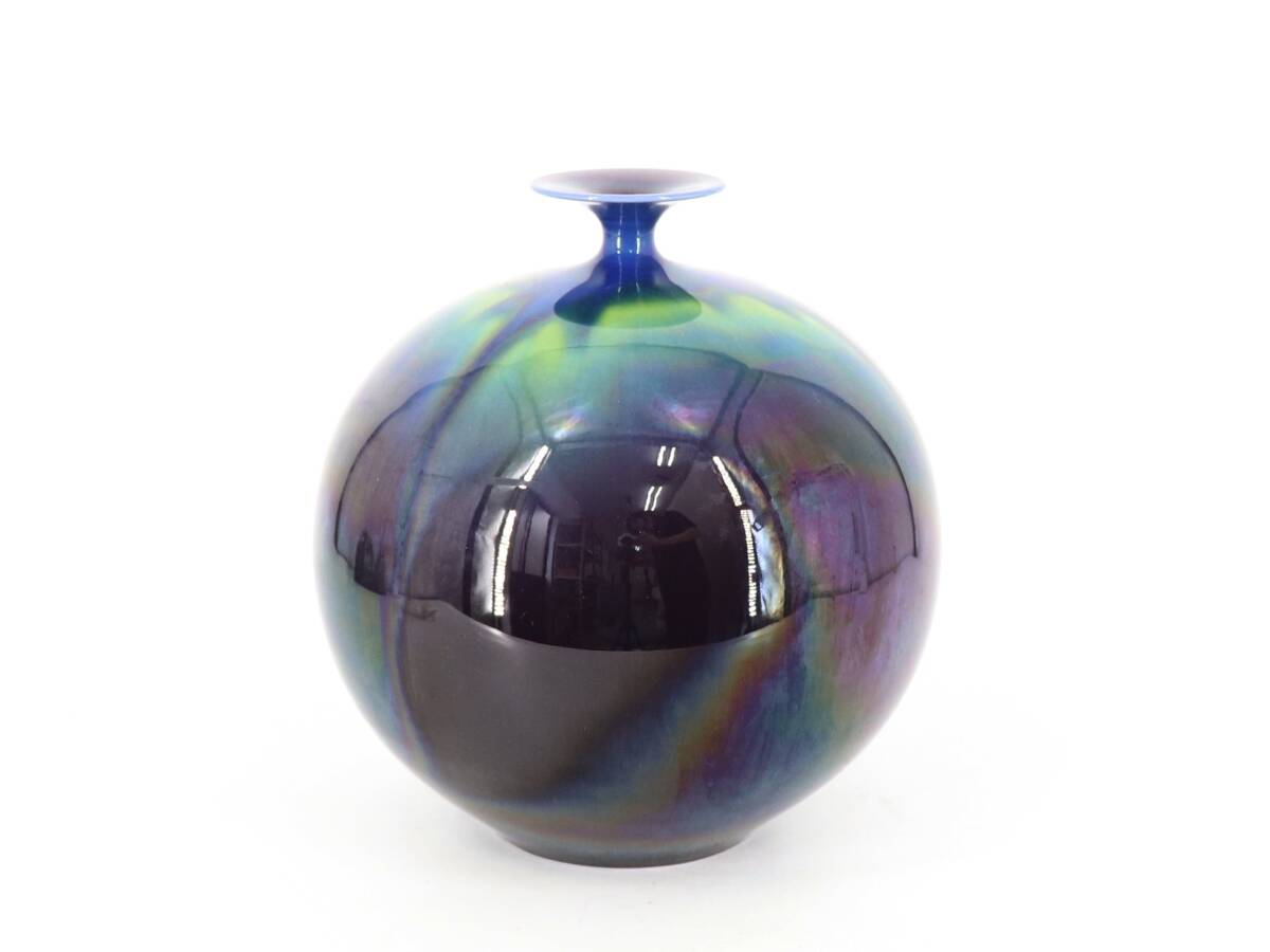 【蔵】九谷焼 人間国宝 三代 徳田八十吉 作 碧明釉 彩釉 壷 高さ約22㌢ 栞 共箱 本物保証 Y3319M 收藏