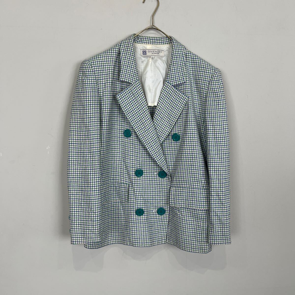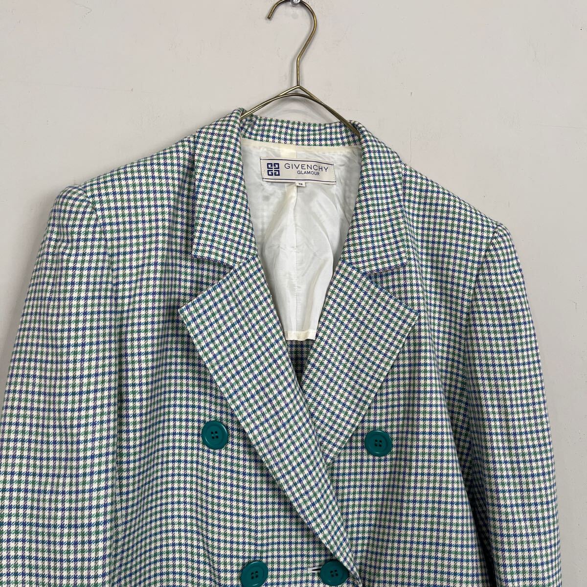 GIVENCHY ジバンシー GLAMOR グラマー ジャケット チェック ダブル 肩パッド テーラードジャケット 長袖 レディース 13 silk×rayon×linen 收藏