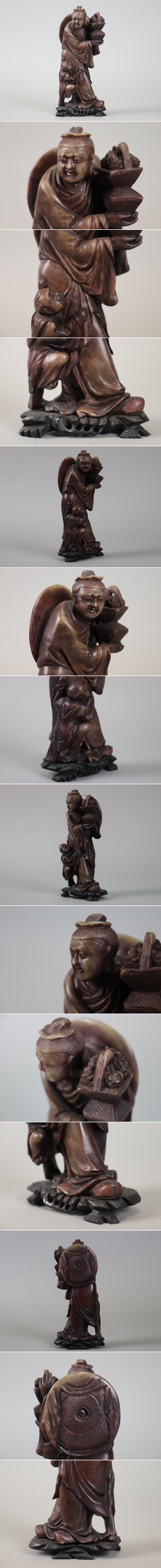 中国美術 唐物 寿山石 人物唐子像 唐木台付 置物 鑑賞 観賞 時代物 細密細工 古美術品[d936] 收藏