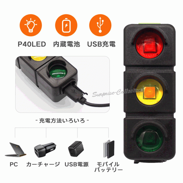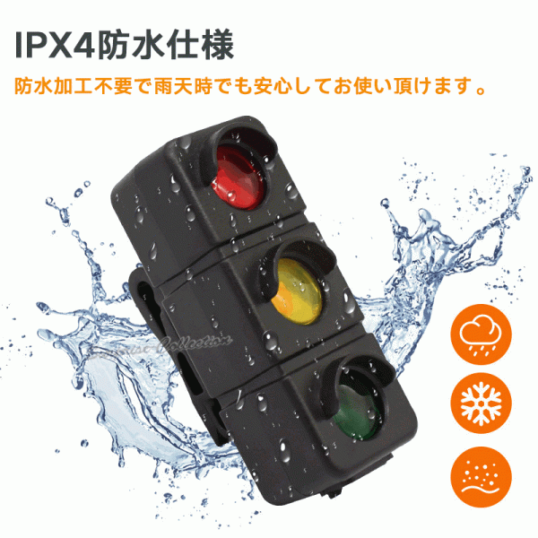 光調節 7段階(三灯常時点灯、三灯相互点灯、3灯同時点滅、赤点滅、黄点滅、緑点滅、SOS)