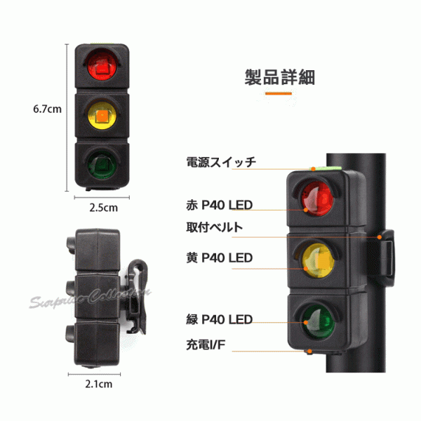 ◎光調節:7段階(三灯常時点灯、三灯相互点灯、3灯同時点滅、赤点滅、黄点滅、緑点滅、SOS)
