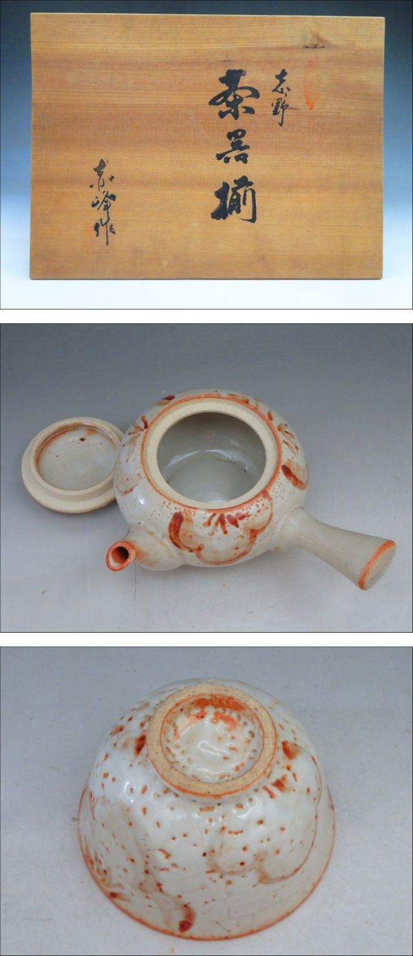 ◆◇赤峰作 花図 志野焼 茶器揃 急須 茶碗 5客 湯呑 煎茶道具 陶器 陶芸 和食器 共箱付◇◆ 收藏