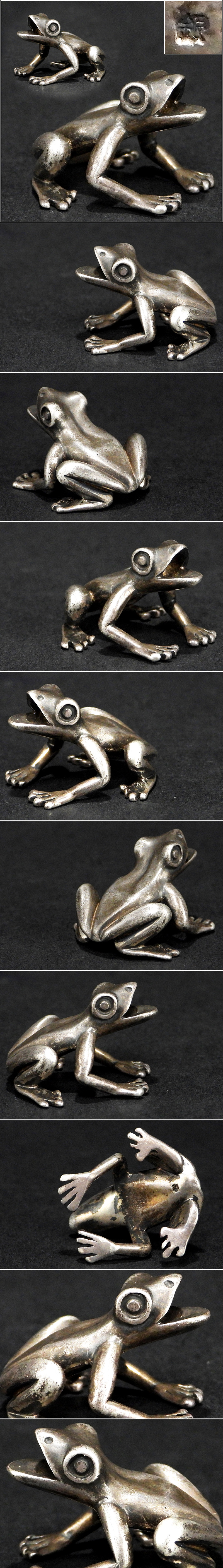 【騰立】古美術 時代 銀製 蛙置物/銀保証 重さ約15g 比重約10.2■1983A 收藏