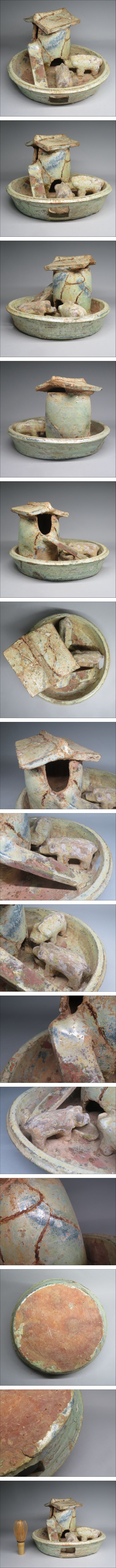 「都内コレクター所蔵品」漢時代 緑釉銀化陶製猪舎 中国美術 東漢時代 ◆加彩 花瓶 発掘 彩文土器 彩陶壺 | ||