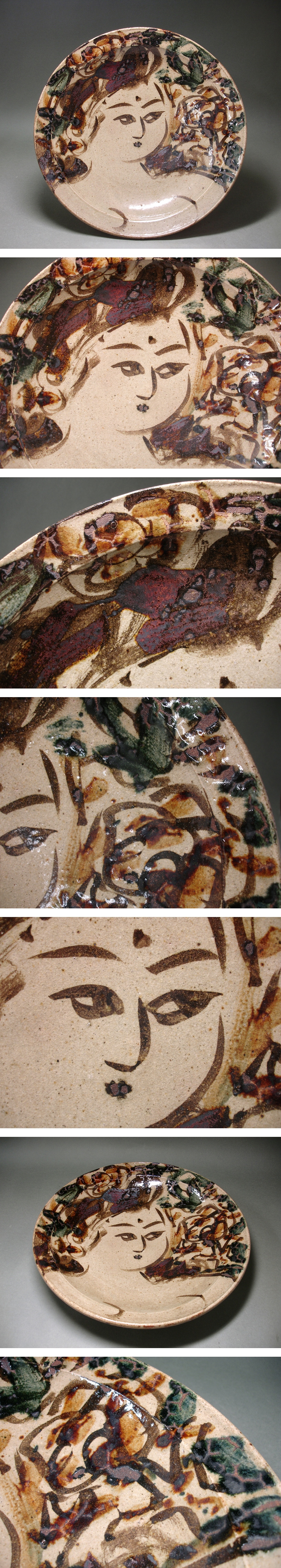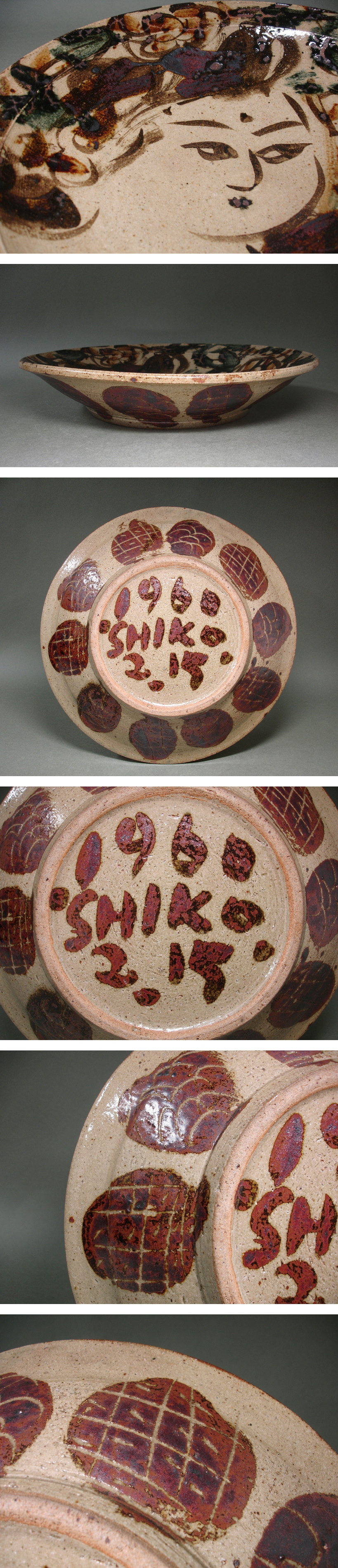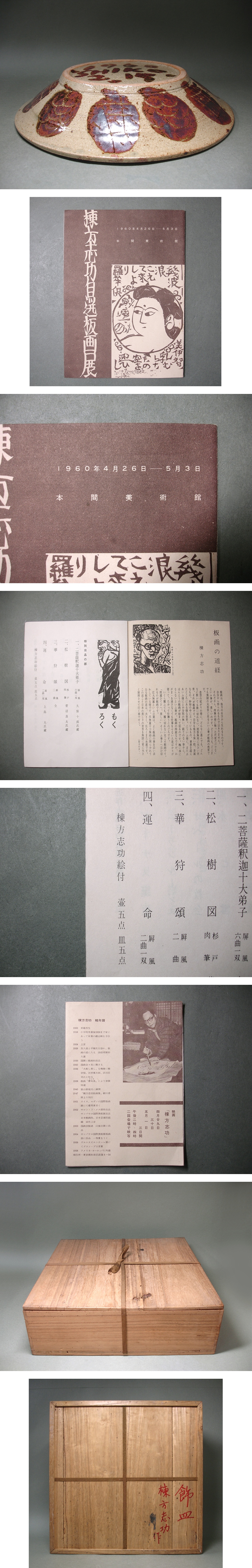 慶應◆【棟方志功】作 1960年個展出品作 花深妃図大皿 大首絵皿 志功肉筆画 展覧会出品目録付 收藏