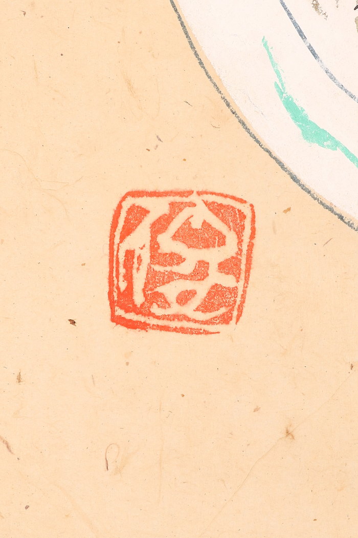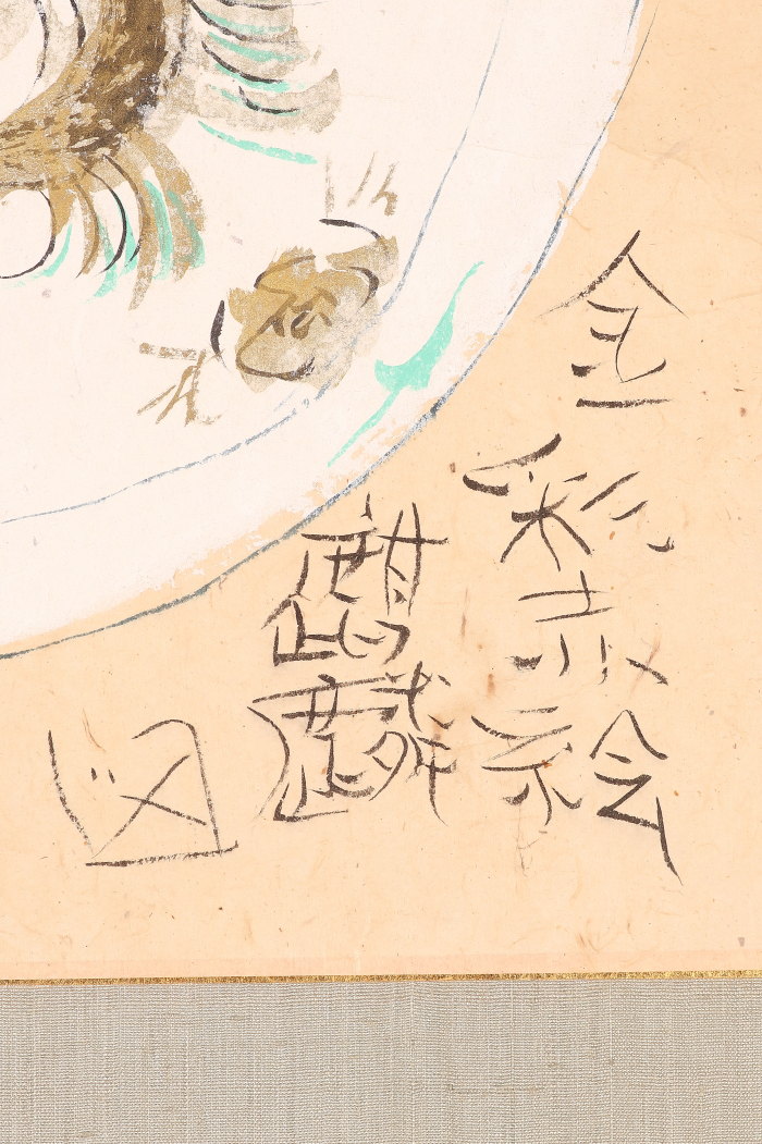 【模写】【伝来】am7474〈渡辺俊明〉金彩赤絵麒麟図 共箱 俳人 静岡の人 收藏