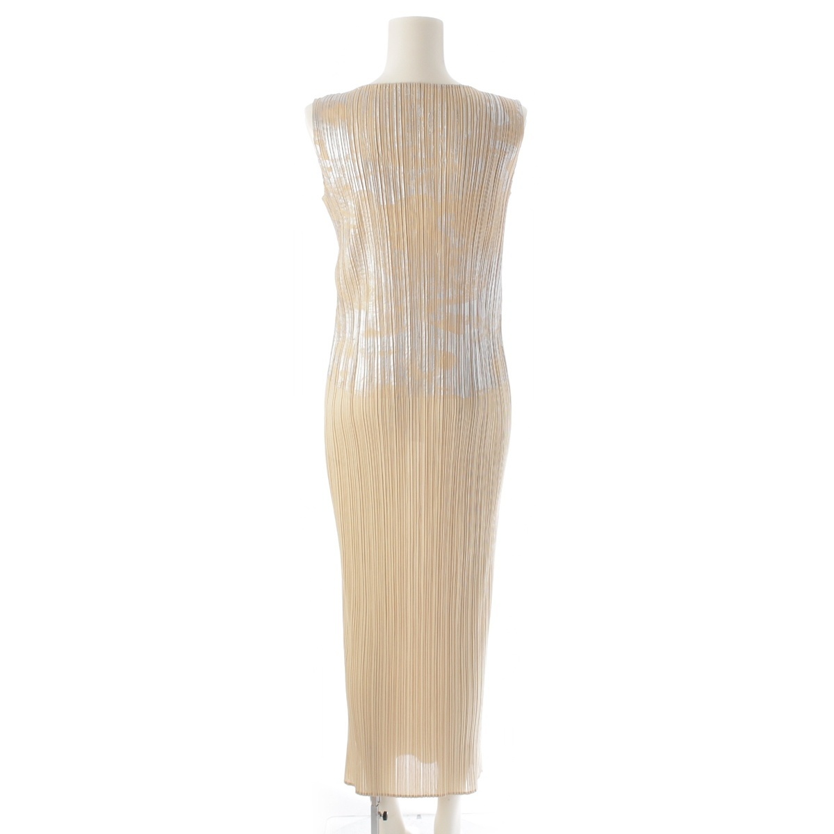 プリーツプリーズ イッセイミヤケ インク転写 ノースリーブ ロング ワンピース PP46-JH616 ベージュ 3【中古】 收藏