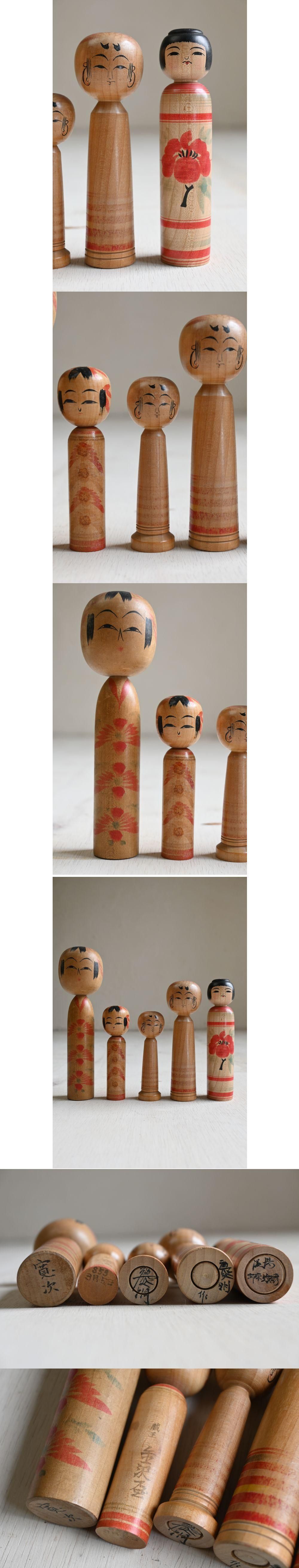 伝統こけし 佐藤寛次 佐藤慶明2本 阿保六知秀 他 5本セット 郷土玩具 木地玩具 伝統工芸 收藏