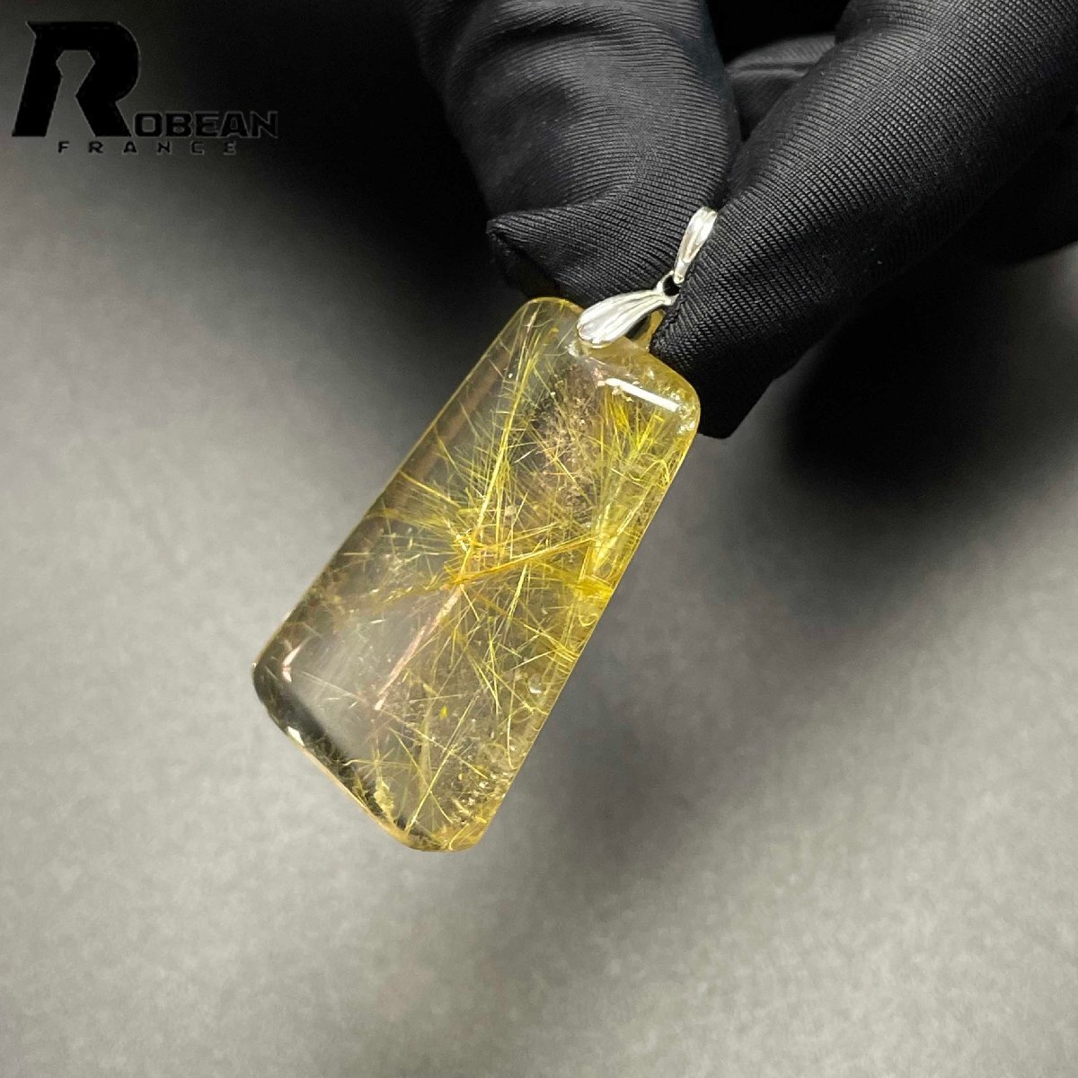 綺麗 EU製 定価6万円★ROBEAN・タイチンルチルペンダント★黄金針水晶 ゴールド アクセサリー 九星開運天然石 35.8*22.2*7.9mm M085275 收藏