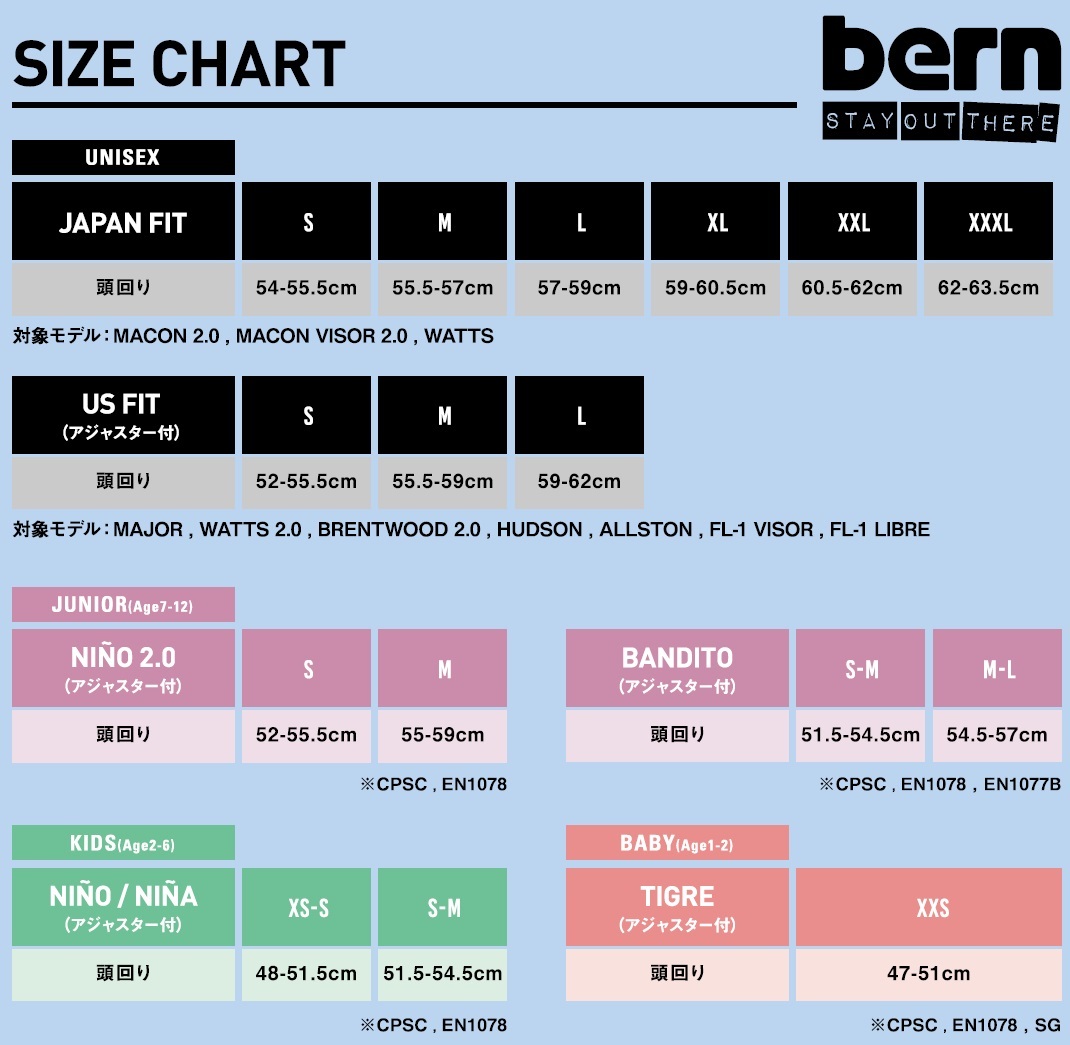 - bernヘルメットは、すべてUSサイズ表記となりますので、