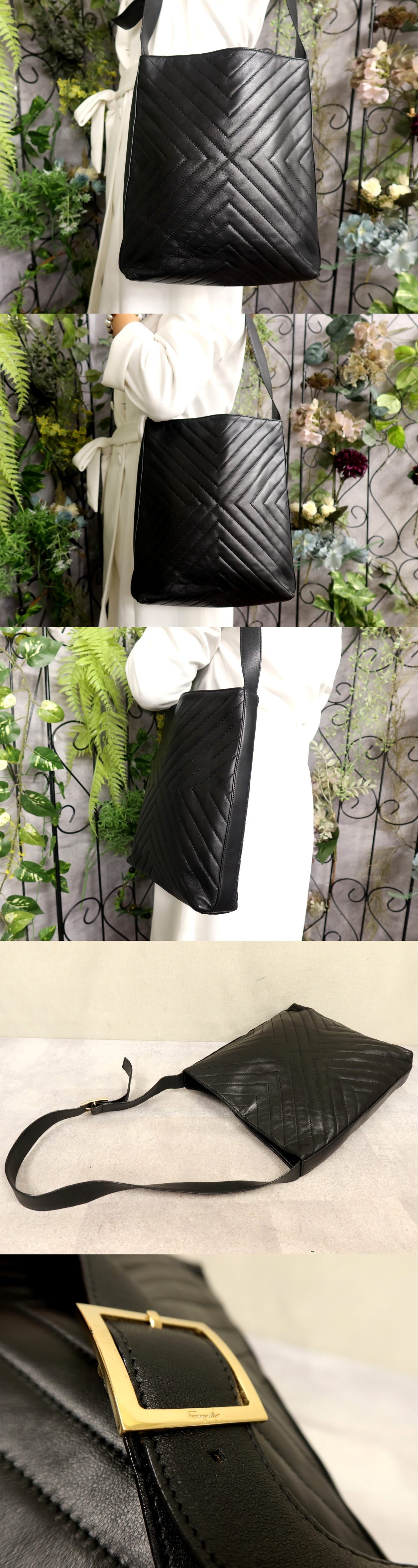 ●超美品●Salvatore Ferragamo フェラガモ●カーフ レザー 本革●ショルダー バッグ●黒●ゴールド金具●肩掛け●B5 書類 かばん●Js61630 收藏