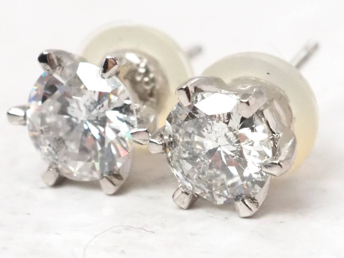【8381J】Pt900/Pt850 天然ダイヤモンド 計0.962ct/0.539ct/0.423ct/1.6g ピアス 收藏