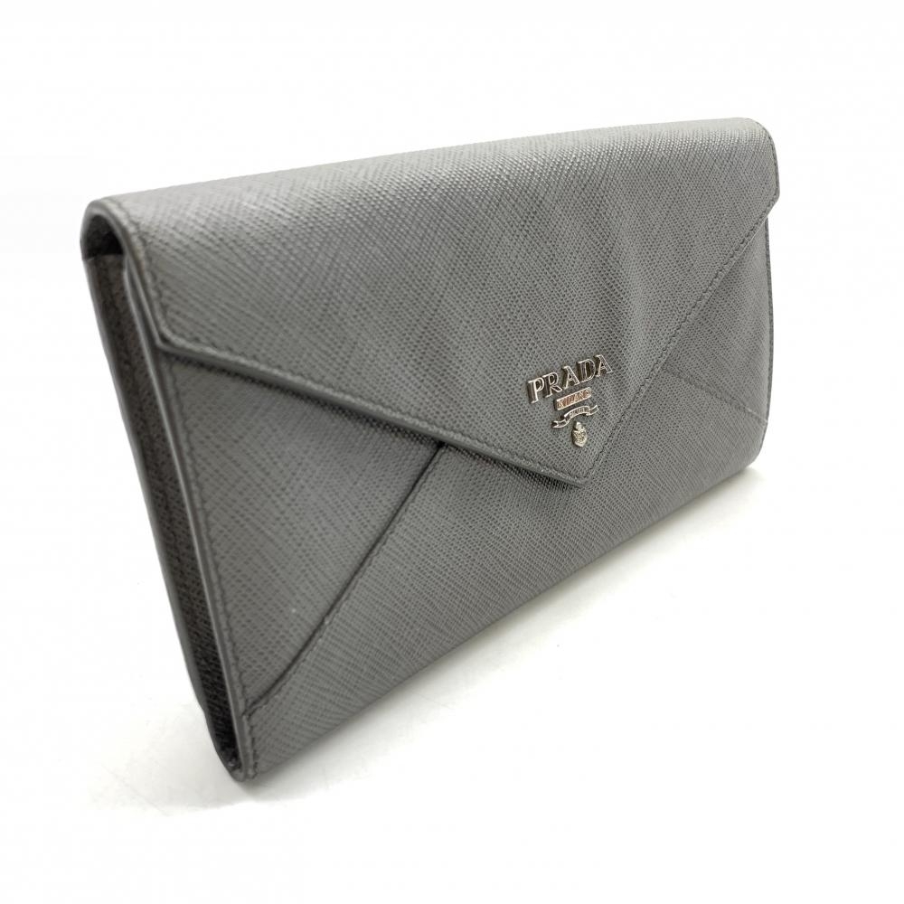PRADA プラダ 1MH037 長財布 サフィアーノ レザー グレー シルバー金具 ロゴ パスケース無し レディース 管理RT43170 收藏