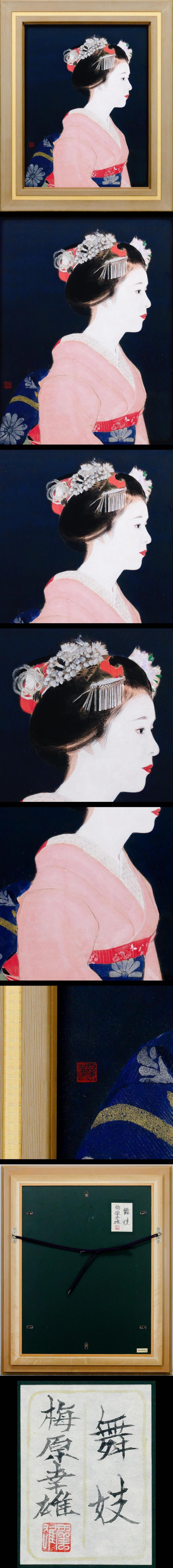 【真作】【WISH】梅原幸雄「舞妓」日本画 15号 大作 金泥 松坂屋取扱 共シール ◆淑やかに微笑む舞妓名画 〇女性像人気画家 #25102545 收藏