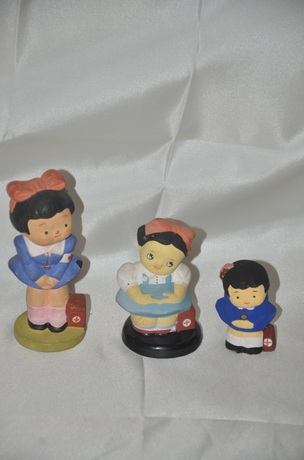 戦前陶器製人形 看護兵のリボンを付けた少女 スカートの看護兵の少女 櫛を付けた看護兵の少女 三点 002-3 收藏