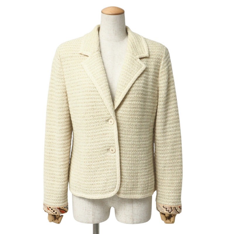 MI2634●レオナール/ LEONARD*ニットジャケット*ブレザー*ラメ糸*パイピング*日本製*レディース サイズL*オフホワイト系 收藏