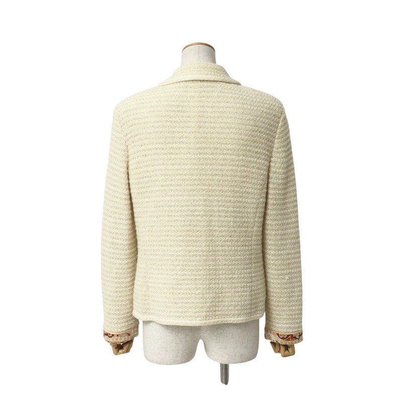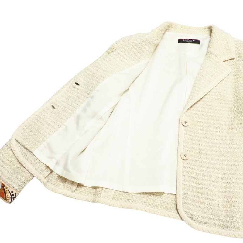 | MI2634●レオナール/ LEONARD*ニットジャケット*ブレザー*ラメ糸*パイピング*日本製*レディース サイズL*オフホワイト系 | |||