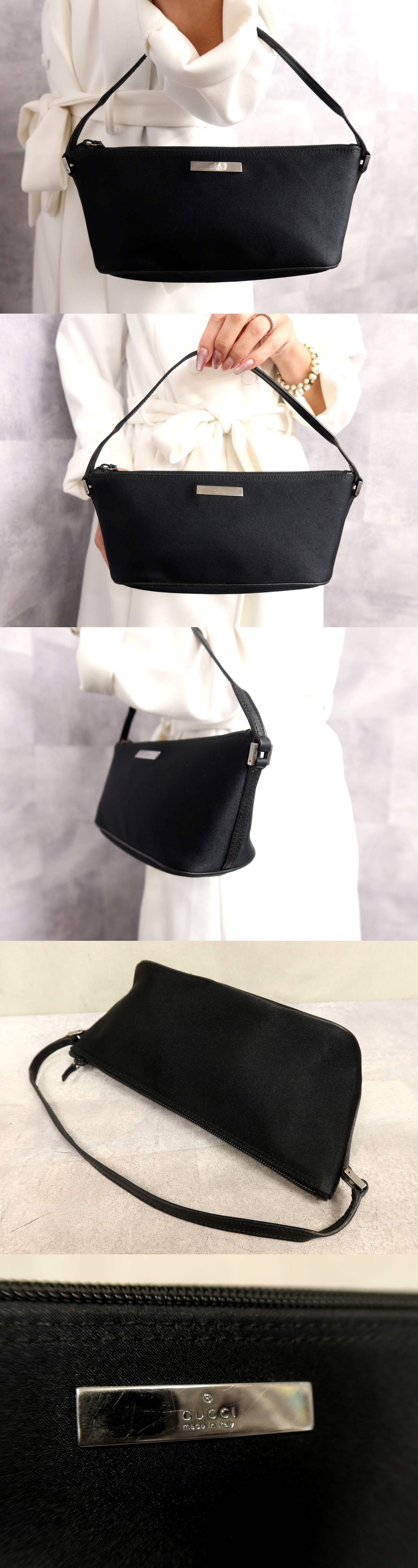 ●超美品●GUCCI グッチ●ロゴプレート●ワンハンドル●ナイロン カーフ レザー 本革●ポーチ●黒●シルバー金具●イタリア製●Js61946 收藏