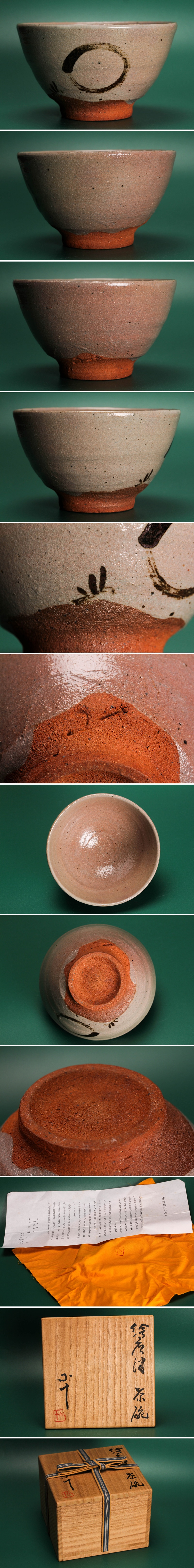 西岡小十 絵唐津茶碗 共箱 共布 栞 茶道具 本物保証 收藏