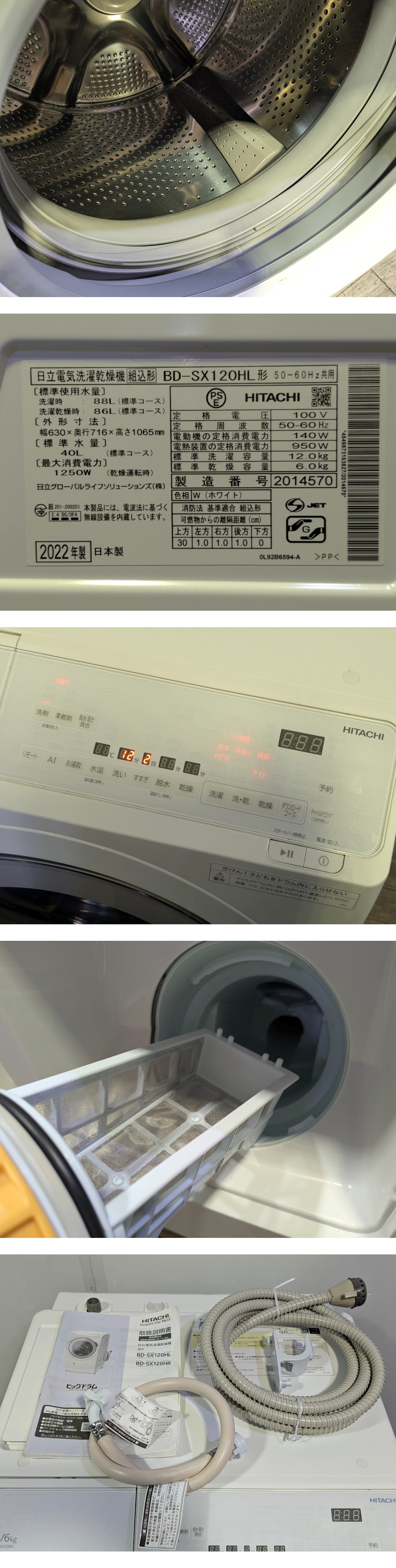 日立 ドラム式洗濯乾燥機 ビッグドラム BD-SX120HL 洗濯12kg 乾燥6kg 2022年製 | |||||||||||||||||||||||||||||||||||||||||||||