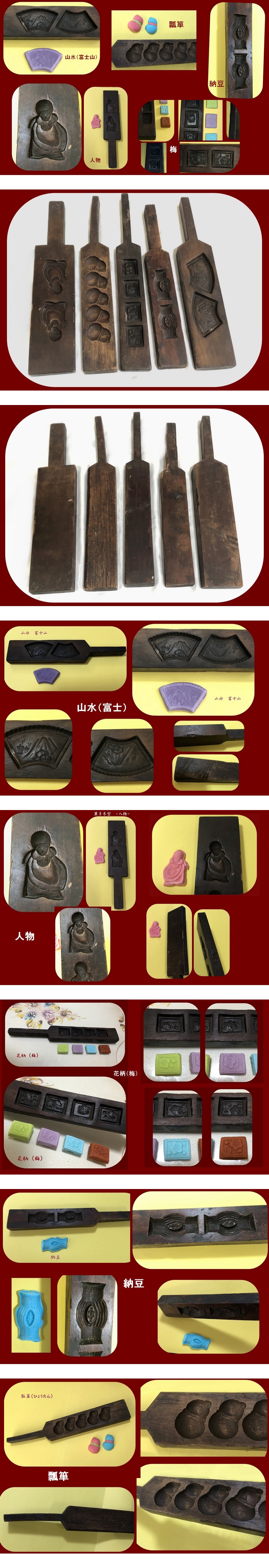 ★ 菓子木型(和菓子木型)5種類セット!(瓢箪、梅、納豆、山水(富士山)、人物)