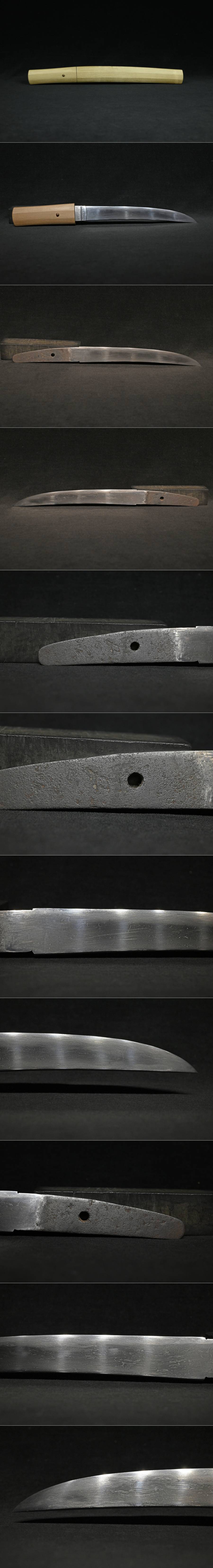 【昊】時代 左 銘 平造 湾れ刃 板目肌 刃渡り21.7cm 短刀 刀剣武具[IK25Is] 收藏