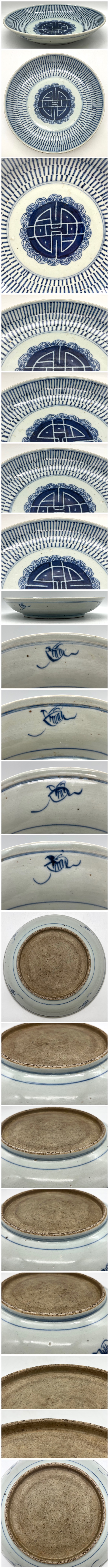 【鶴】長崎旧家 蔵出 清時代 嘉慶期 中国美術 唐物 長寿祈願寿字紋青花盤 大皿 直径約27.7cm◯茶道具・古染・南京・染付・日本料理 A561 收藏